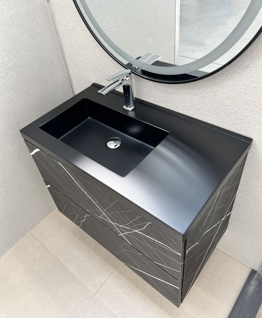 • Голяма мивка със скрит сифон и ПВЦ чекмедже с черен мат рамка VIENA 80