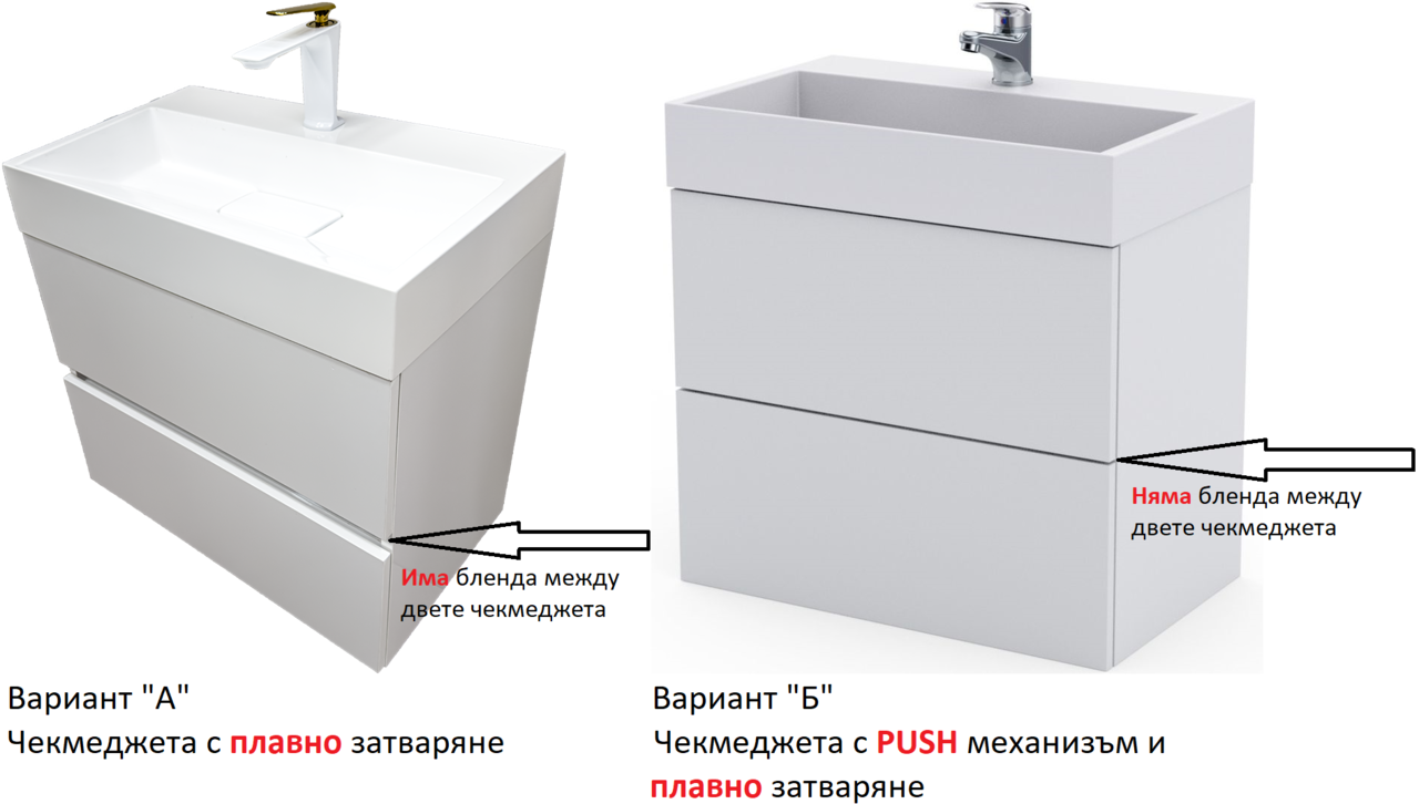 Съчетавайки стил, функционалност и издръжливост, нашите ПВЦ шкафове с две чекмеджета с пуш-механизъм са идеалното решение за подобряване на организацията и визията на вашата баня. Направете правилния избор за вашето пространство и се наслаждавайте на ежедневния комфорт и удоволствие.