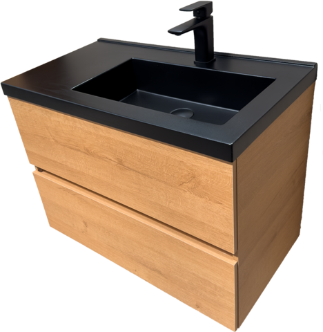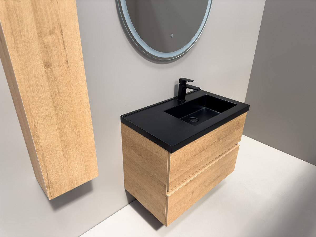 • Голяма мивка със скрит сифон и ПВЦ чекмедже с черен мат рамка VIENA 80