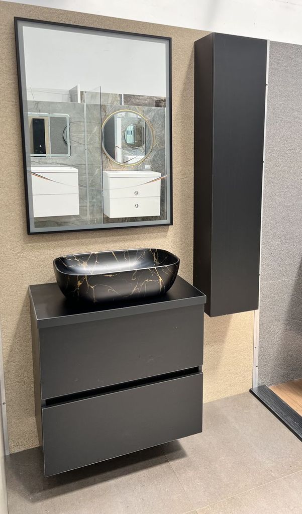 • Мивка за баня и мебел с черни рамки и чекмедже VIENA 70
