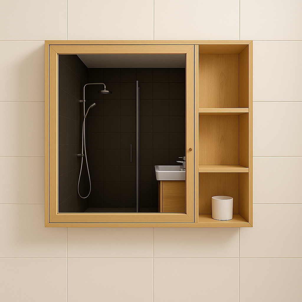 3. PVC шкаф дървесен с вградено огледало и ниша