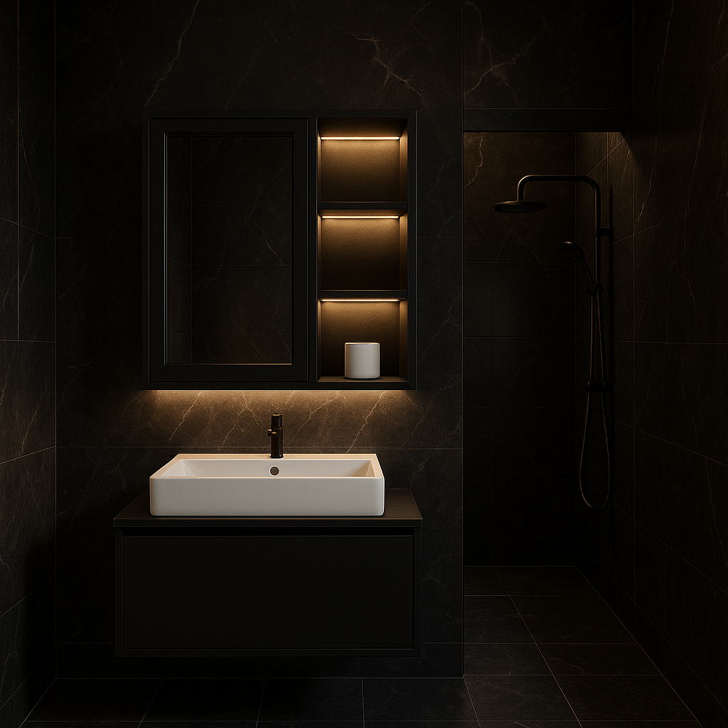 3. PVC шкаф с вградено огледало и ниша BLACK