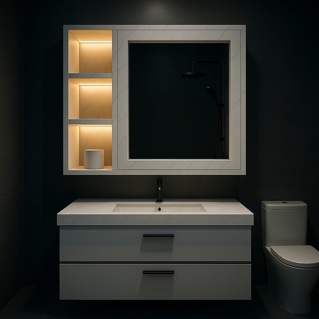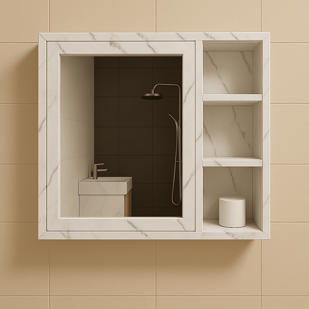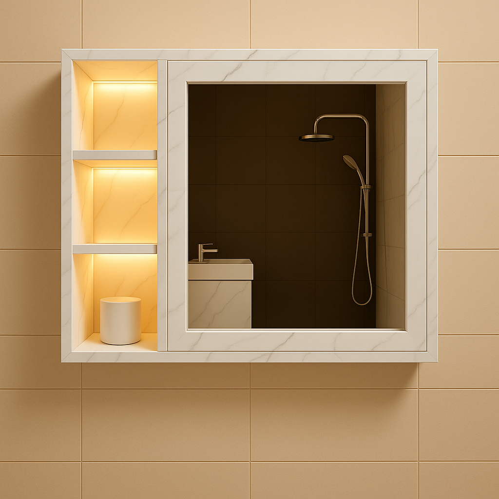 • PVC шкаф с вградено огледало и ниша Мрамор Мат
