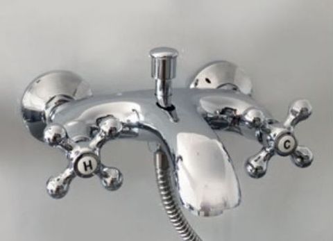 Душ батерия с ретро дизайн. Смесителят има чучур и отвор за присъединяване на шлаух. В горната част на смесителя е разположен превключвател посредством който се разпределя водният поток, съответно към чучура или към ръчен душ. Затварящите механизми са керамични. Тялото е месингово с хромирано покритие. В комплекта са включени ексцентриците и розетките.