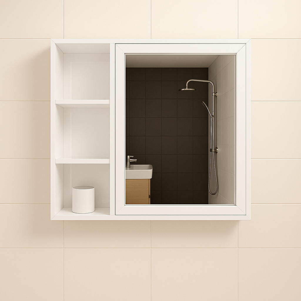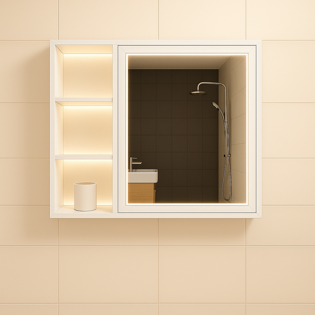 • Шкаф с вградено огледало и ниша бял