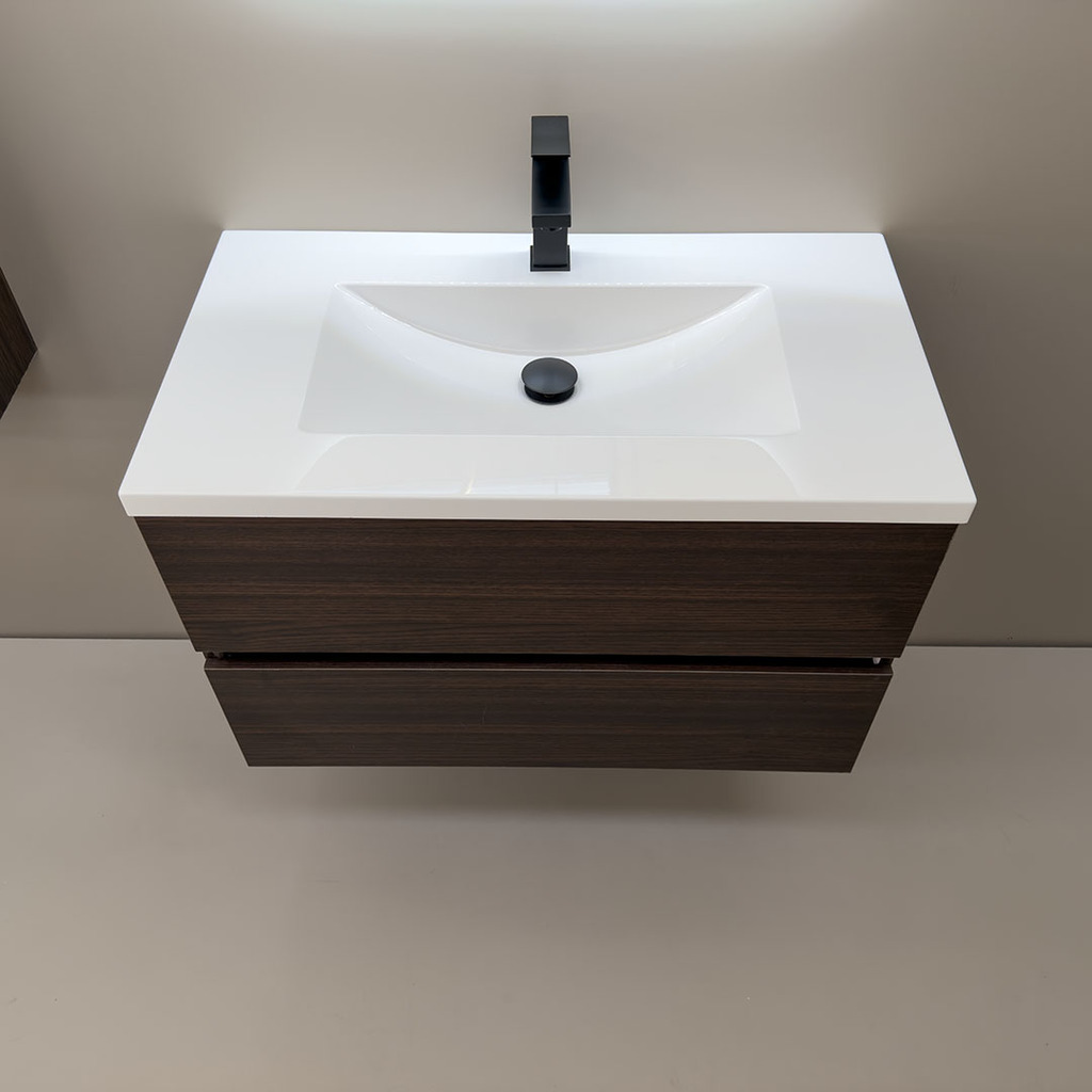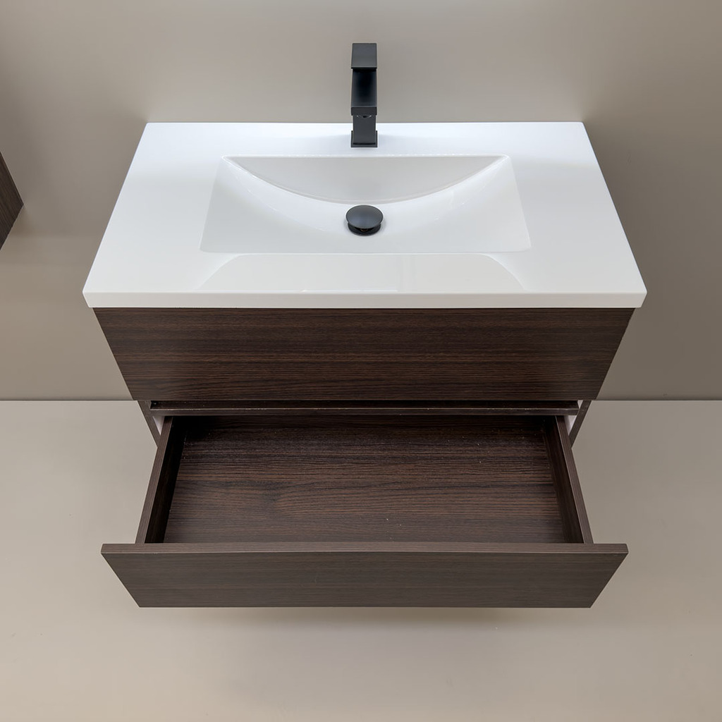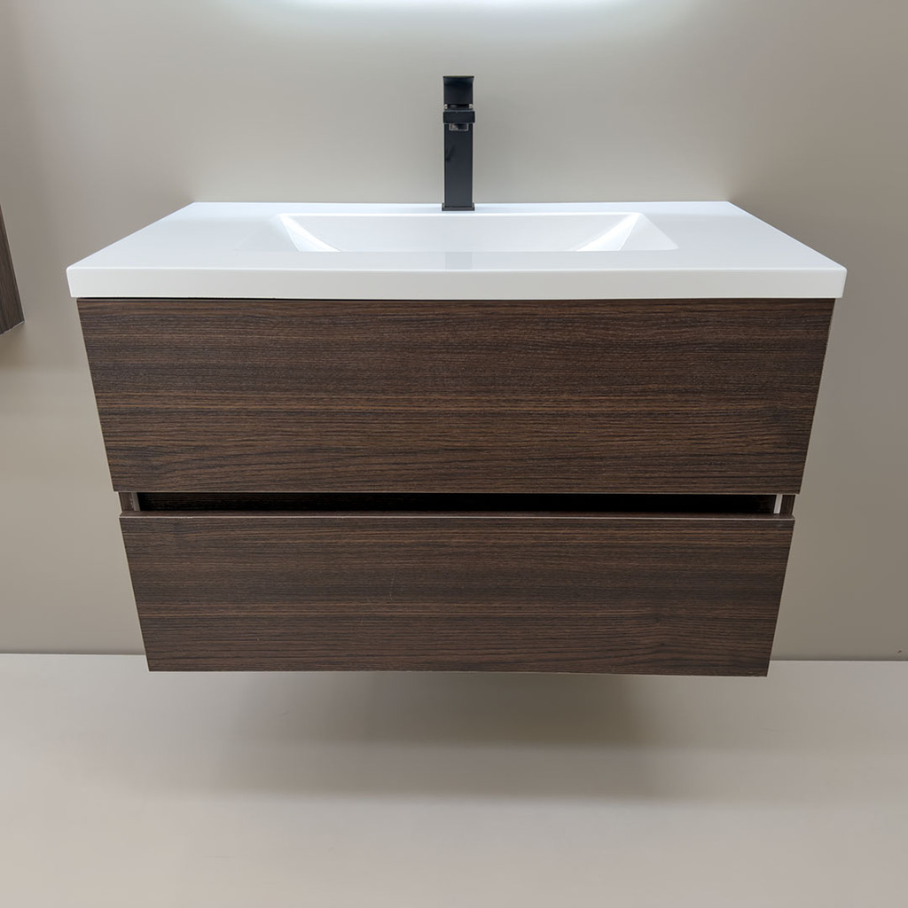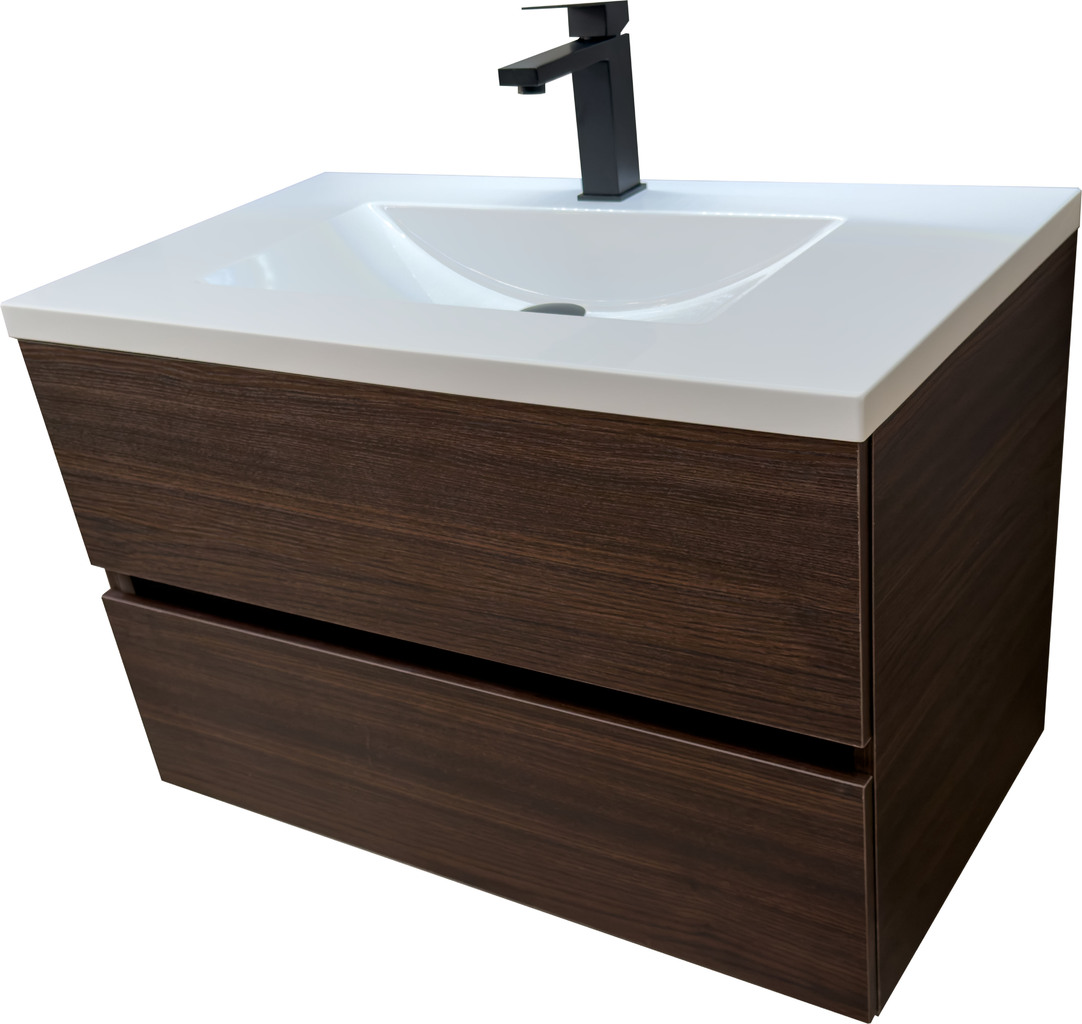 • Шкаф за баня от ПВЦ цвят тъмно дърво с бяла мивка Verona 80 Venge White