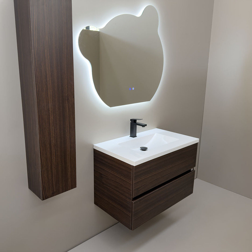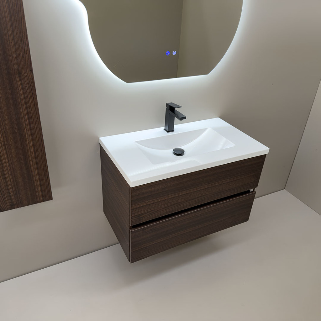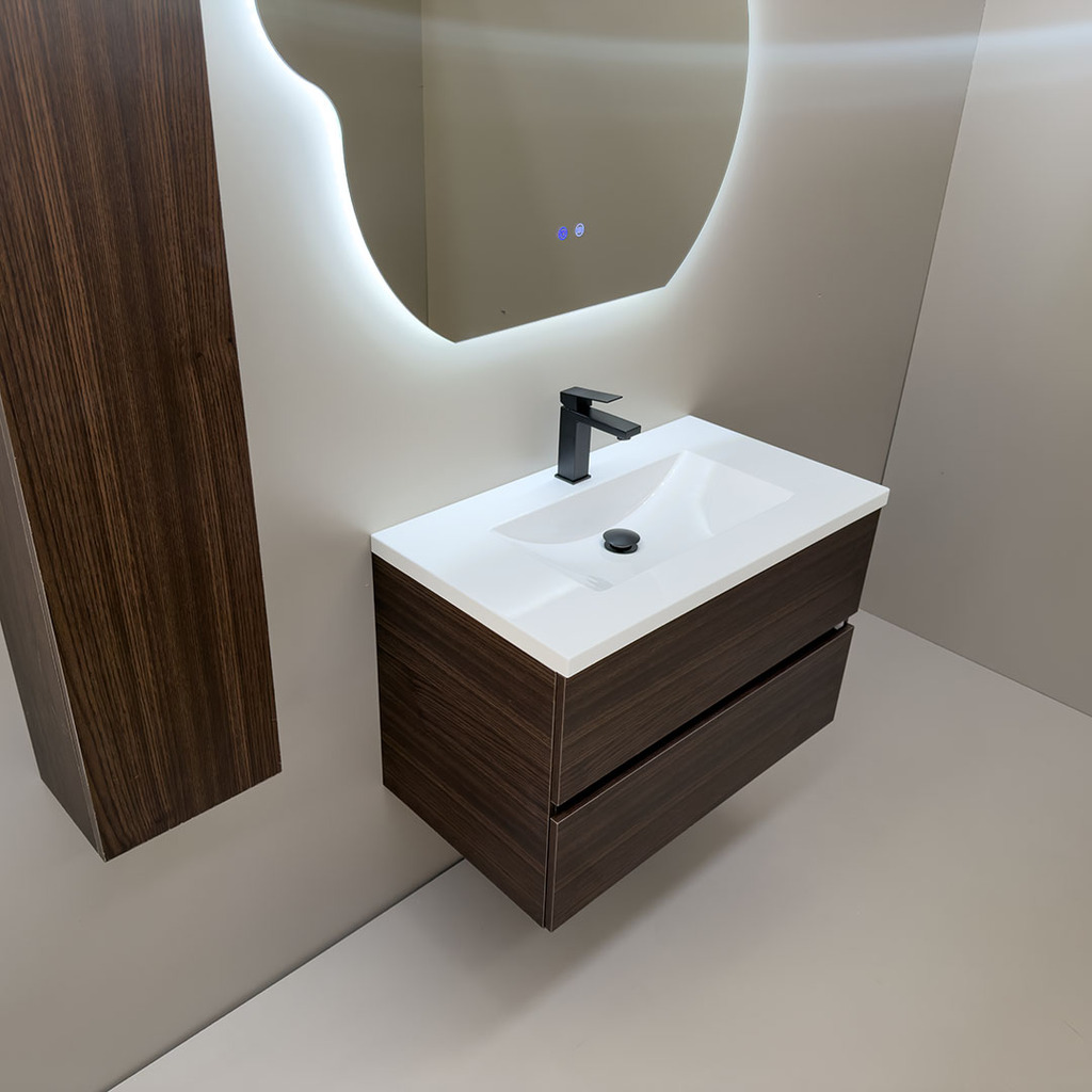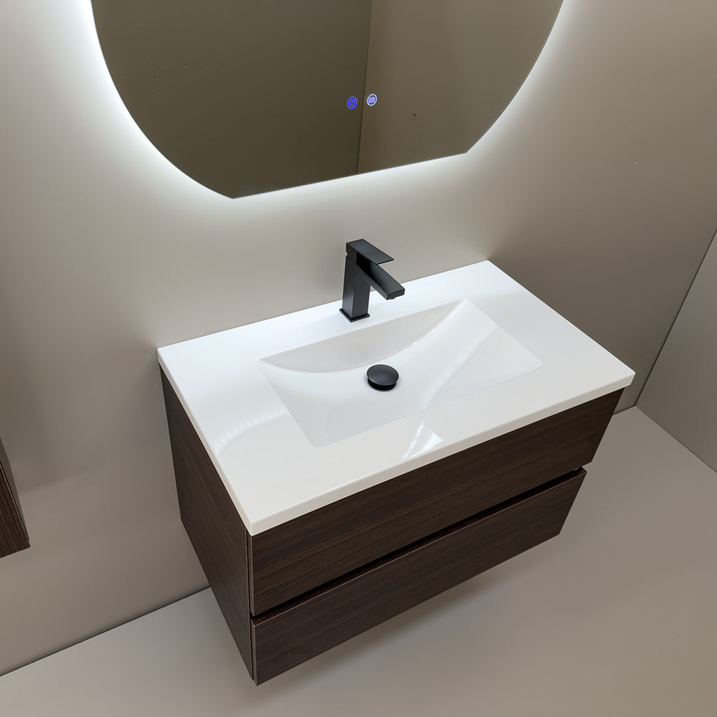 • Шкаф за баня от ПВЦ цвят тъмно дърво с бяла мивка Verona 80 Venge White