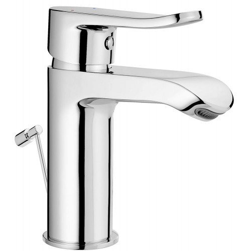 Стоящ смесител за мивка в баня. Смесителят е със средно големи размери, а аераторът е с наклон така че водната струя да влиза навътре в коритото на мивката за по-удобно ползване. Ръкохватката е плътна, широка, метална, удобна за употреба. Дизайнът на батерията е по-скоро с овални форми. Специфичното в случая, е че това е каскаден тип смесител с отворен аератор при който водната струя е свободно течаща, неаерирана, много приятна на допир. Подходящ е за различни като габарити мивки особено такива с по-голям размер. Изработен е изцяло от месинг. Смесителната глава е керамична. В комплекта са включени крепежните елементи и гъвкавите връзки за топла и студена вода, като не се налага да се закупува нищо допълнително за монтажа или експлоатацията на артикула.