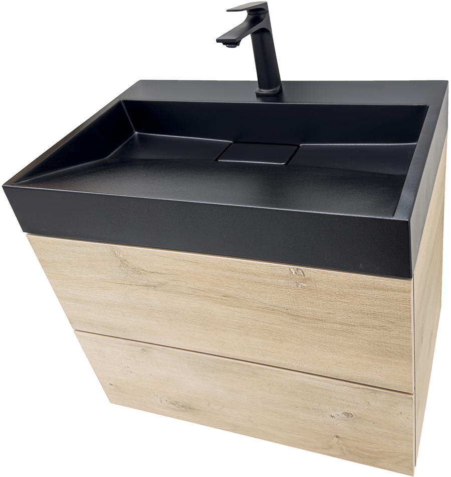 Голяма мивка със скрит сифон и ПВЦ чекмедже с черен мат рамка VIENA 80